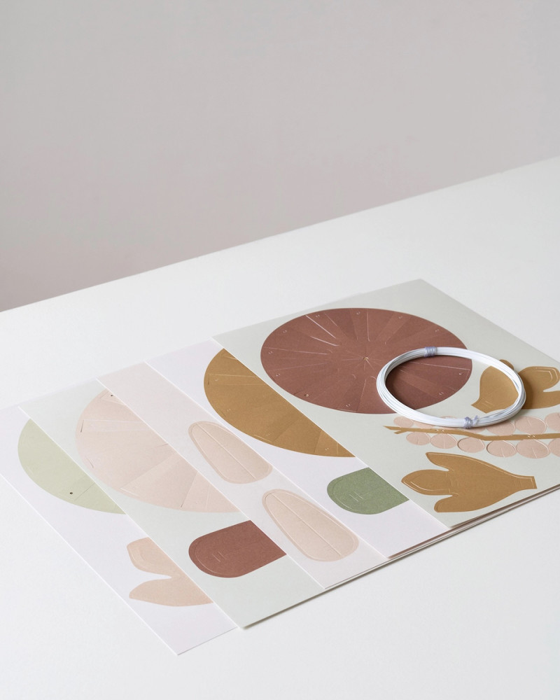 Alt er forudstanset og foldet, og blomsterstænglerne (tråd) medfølger.