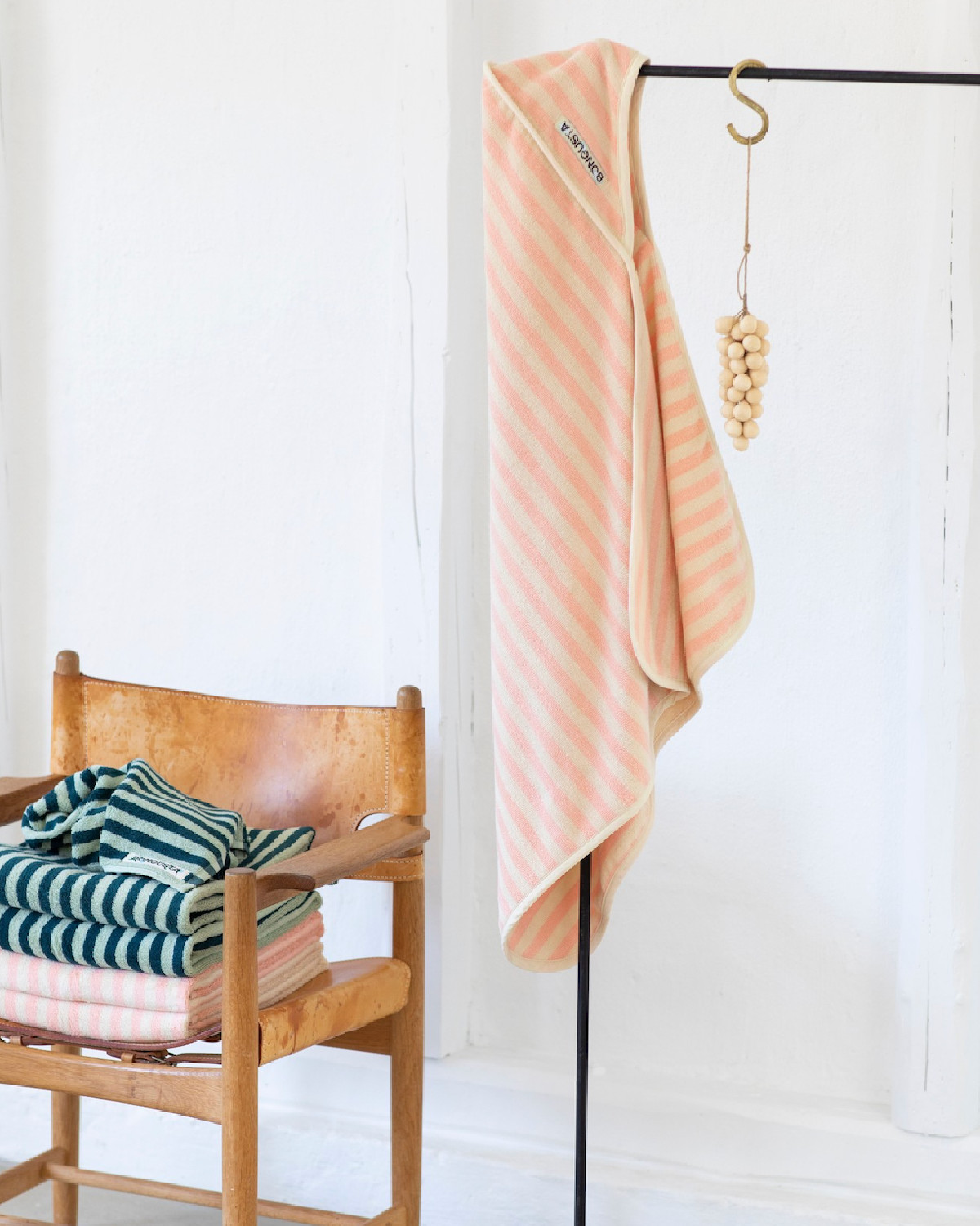 Er du på udkig efter håndklæder til børn? Så prøv de nye kvalitets håndklæder med hætte fra Bongusta. De er dejligt tykke og bløde. Håndklæderne kommer i flere smukke striber.