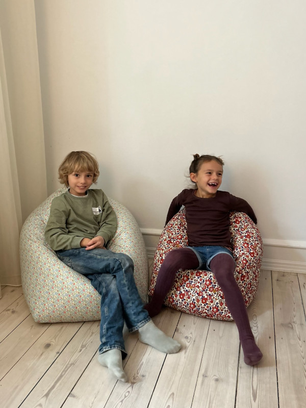 Sækkestol til børn med betræk lavet i Libertyprint. Dette er vores junior sækkestol, der passer til børn ca. 5-10 år.