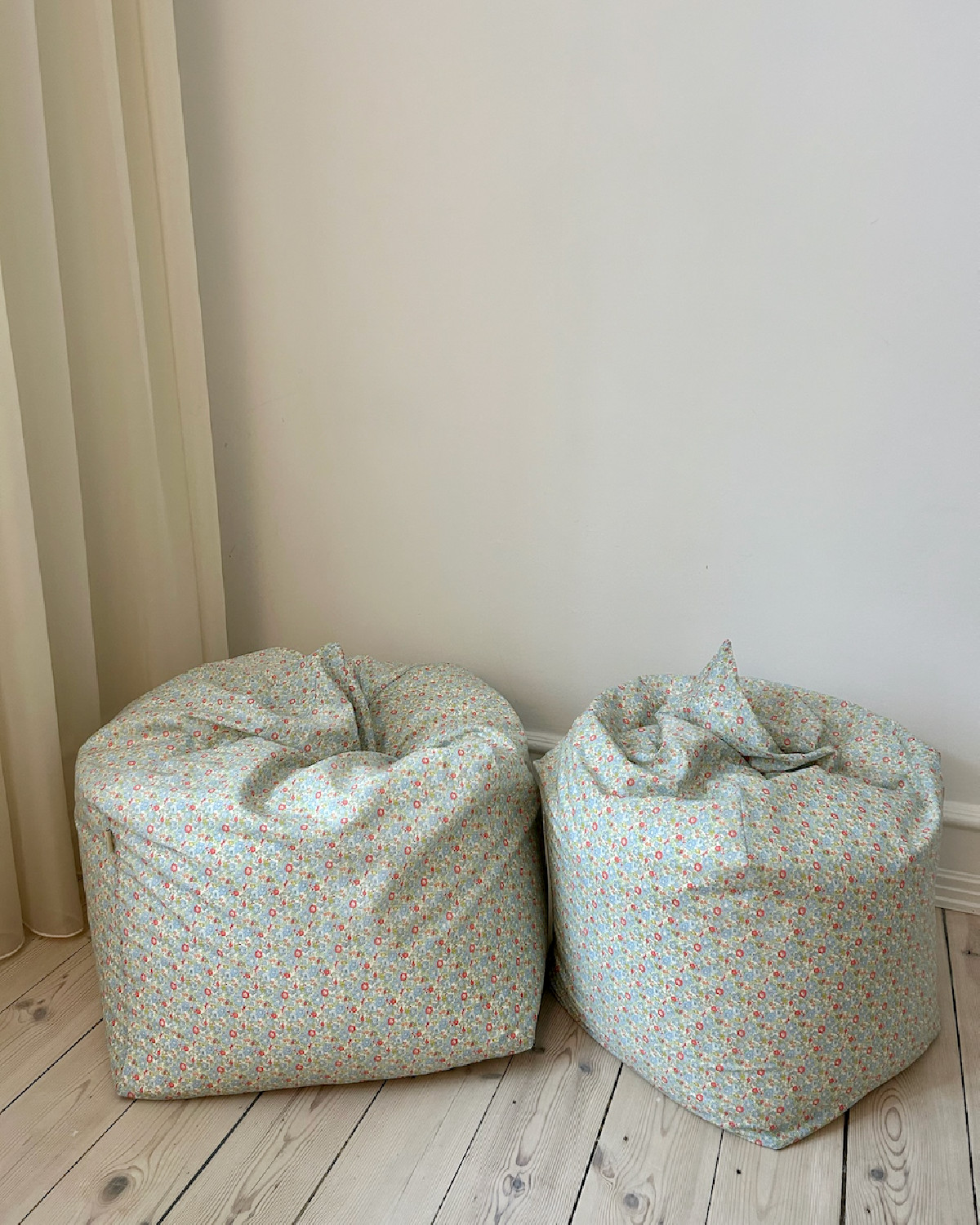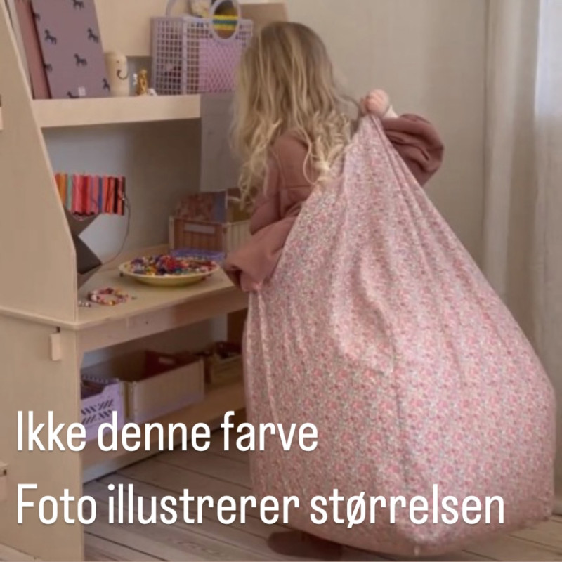 Sækkestol til børn med betræk lavet i Libertyprint. Dette er vores lille sækkestol (den lille af de 2 på fotoet), der passer til børn ca. 2-6 år.