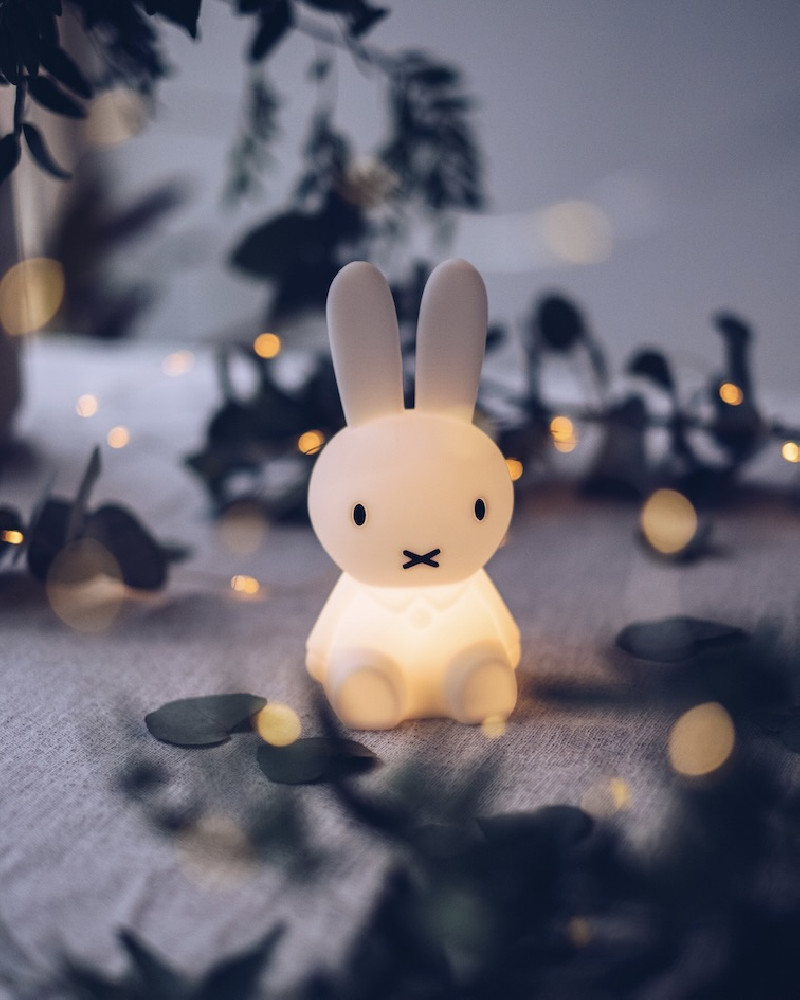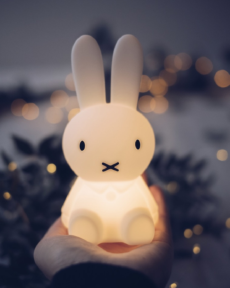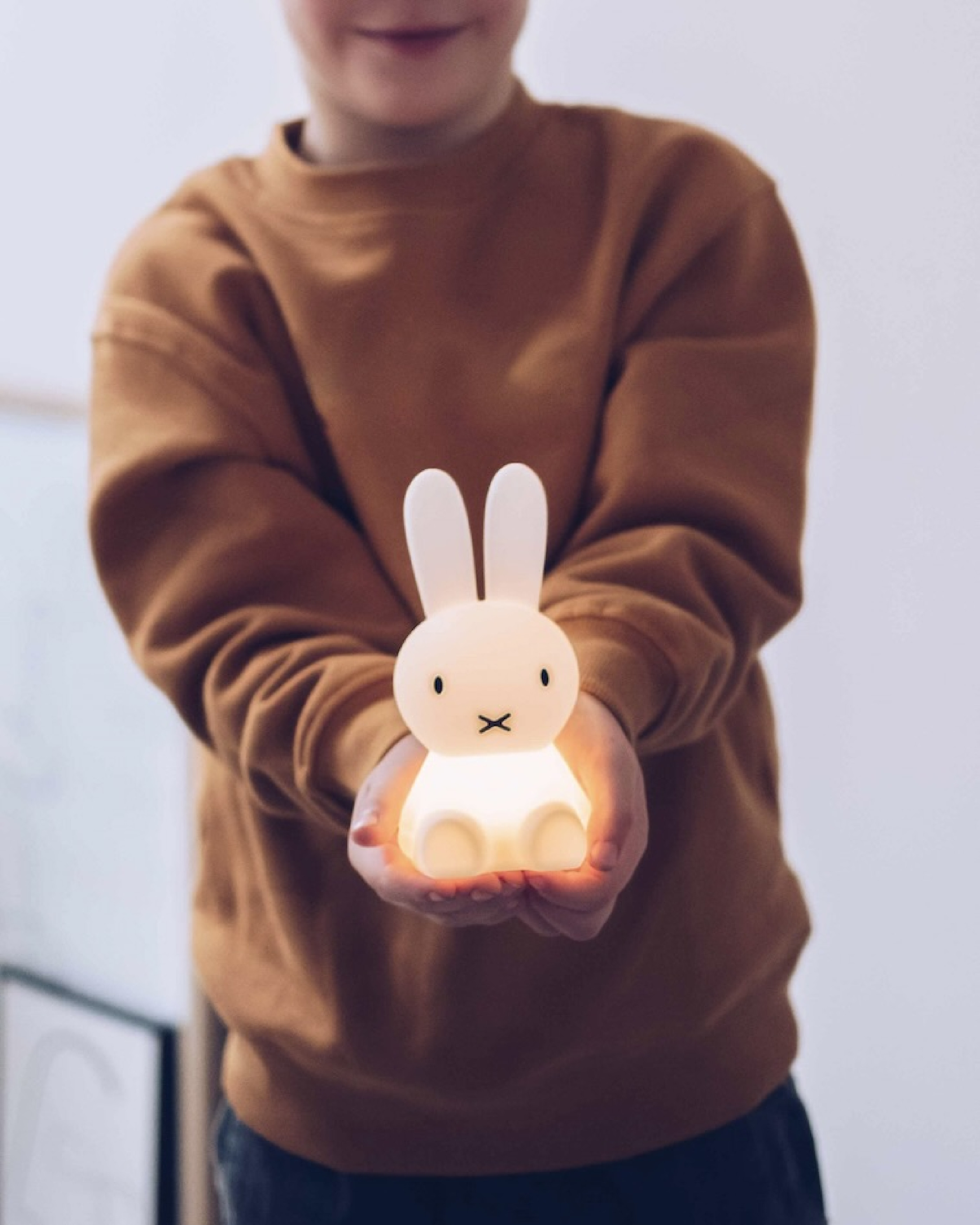 Miffy-lampen giver en fin stemningsbelysning og kan bruges som natlampe.