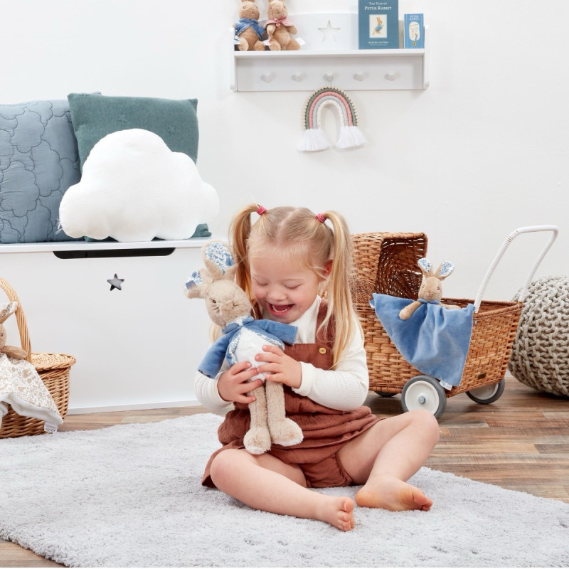 En blød ven. Perfekt gave, evt. sammen med en bog om Peter Kanin (se her) eller det populære Peter Kanin spisestel også fra Petit Jour.