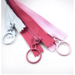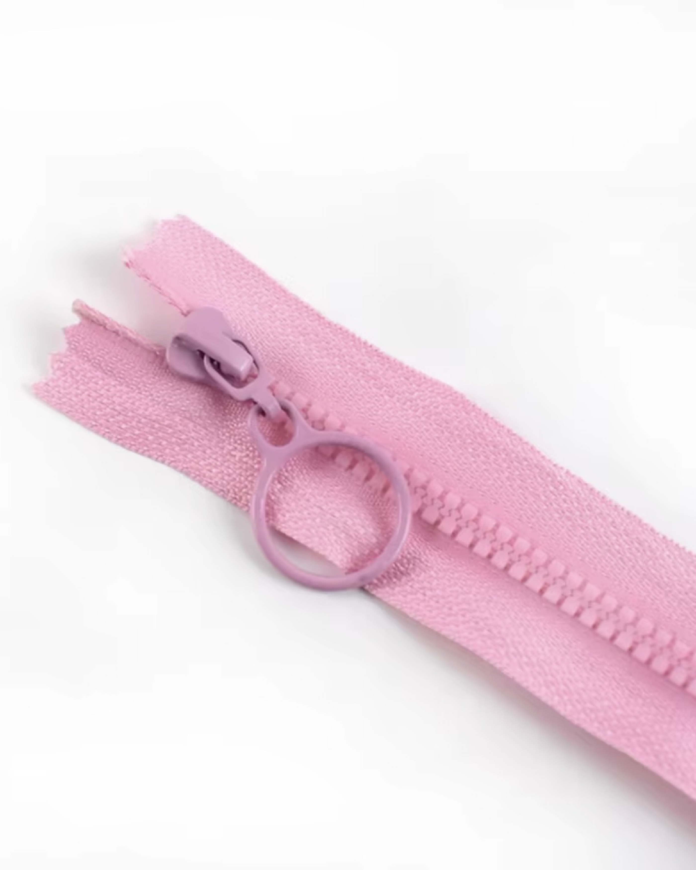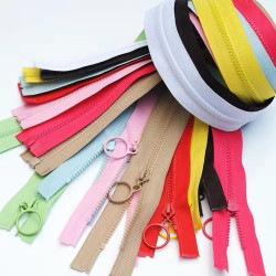 Lynlås med indfarvede tænder i plast. Ikke-delbar.