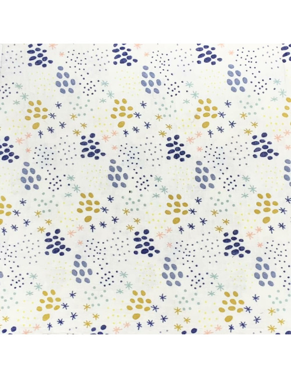 Blød krinkel-bomuld med grafisk print. Kvaliteten minder om muslin eller dobbelt gaze bomuld.