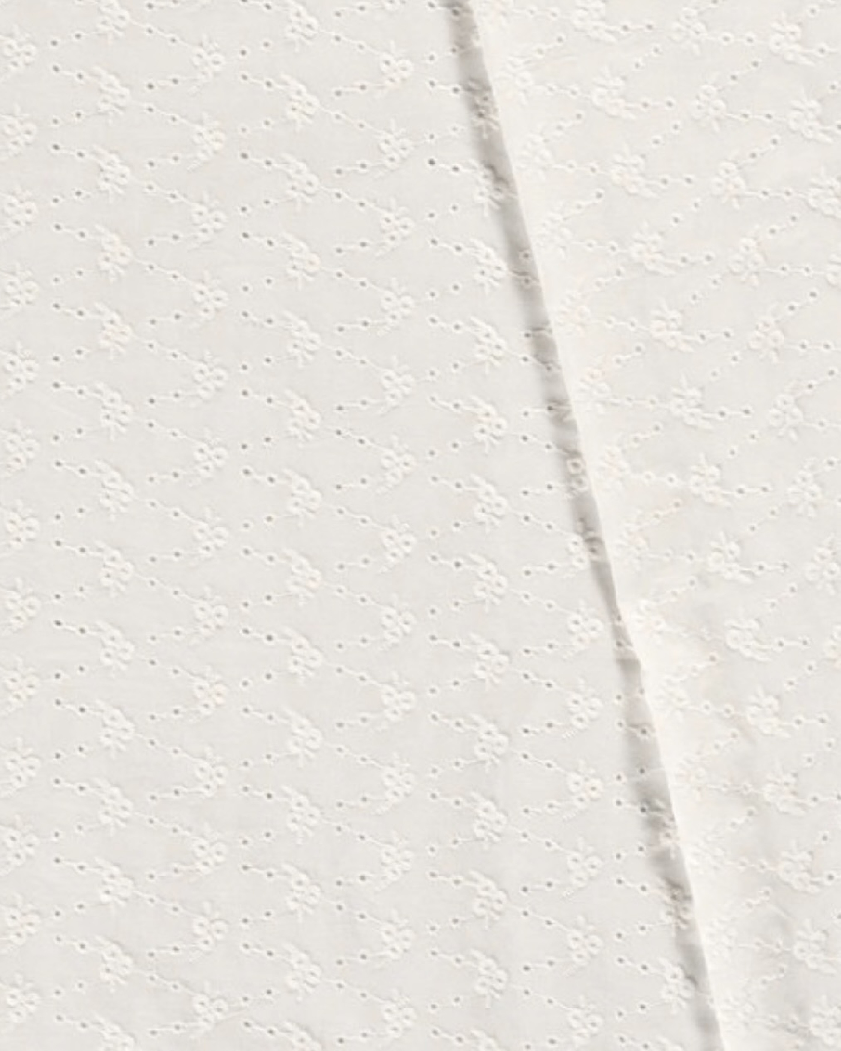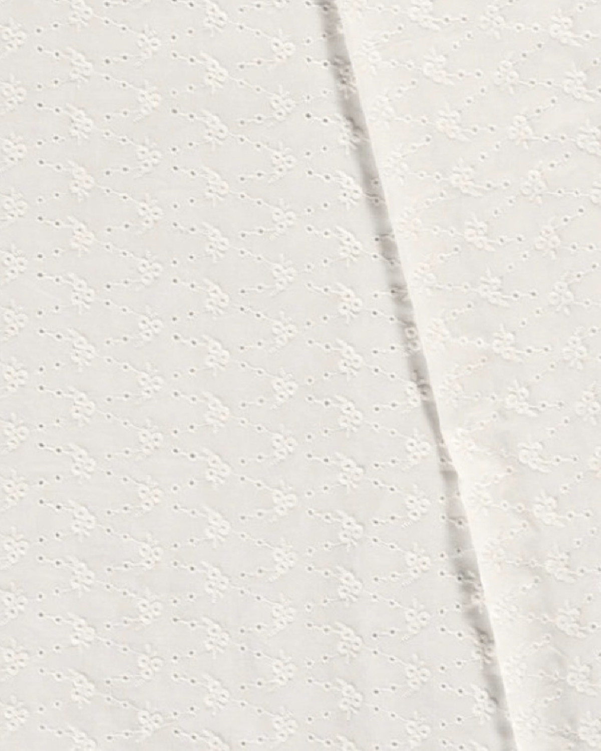 Broderet blondestof i bomuld med et forholdsvist stort mønster.