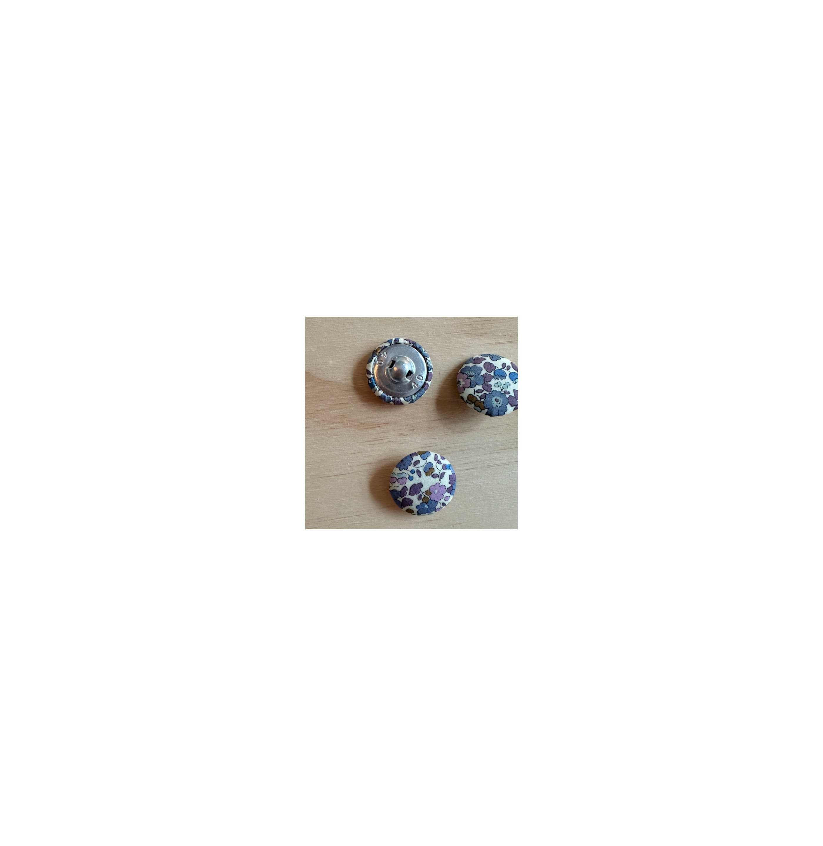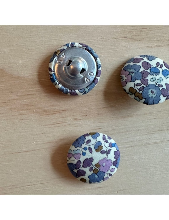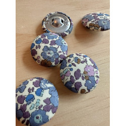 Blomstrede stofknapper med Libertystof.. Selve knappen er i metal.