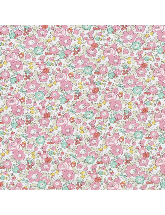 Blomstrede stofknapper med Libertystof.. Selve knappen er i metal.