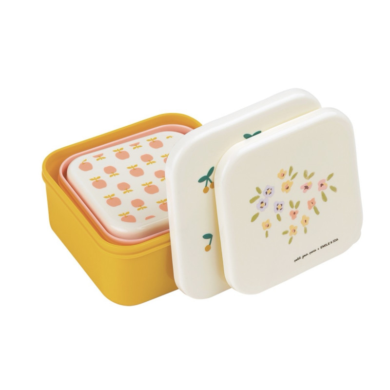 3 forskellige størrelser snackbokse, der kan rumme alle de snacks der skal med på turen. Boksene holder maden frisk og lækker.