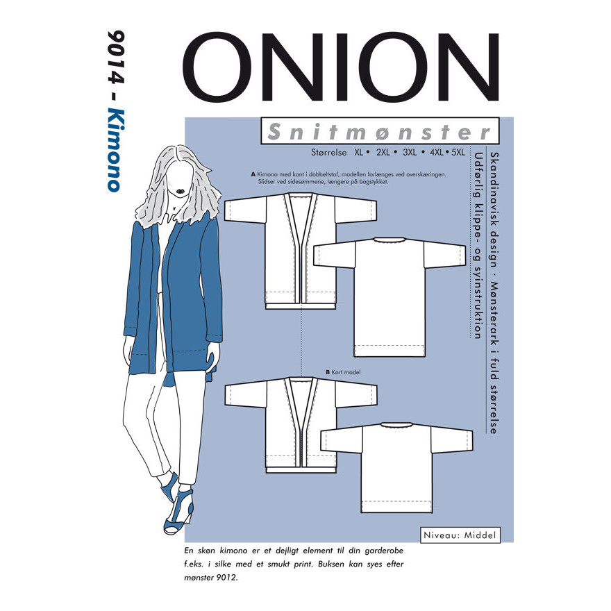 Kimono’en er et super aktuelt emne, som her kommer i et helt klassisk snit - perfekt til smukke silke eller viscose stoffer, eller andet stof som falder godt.