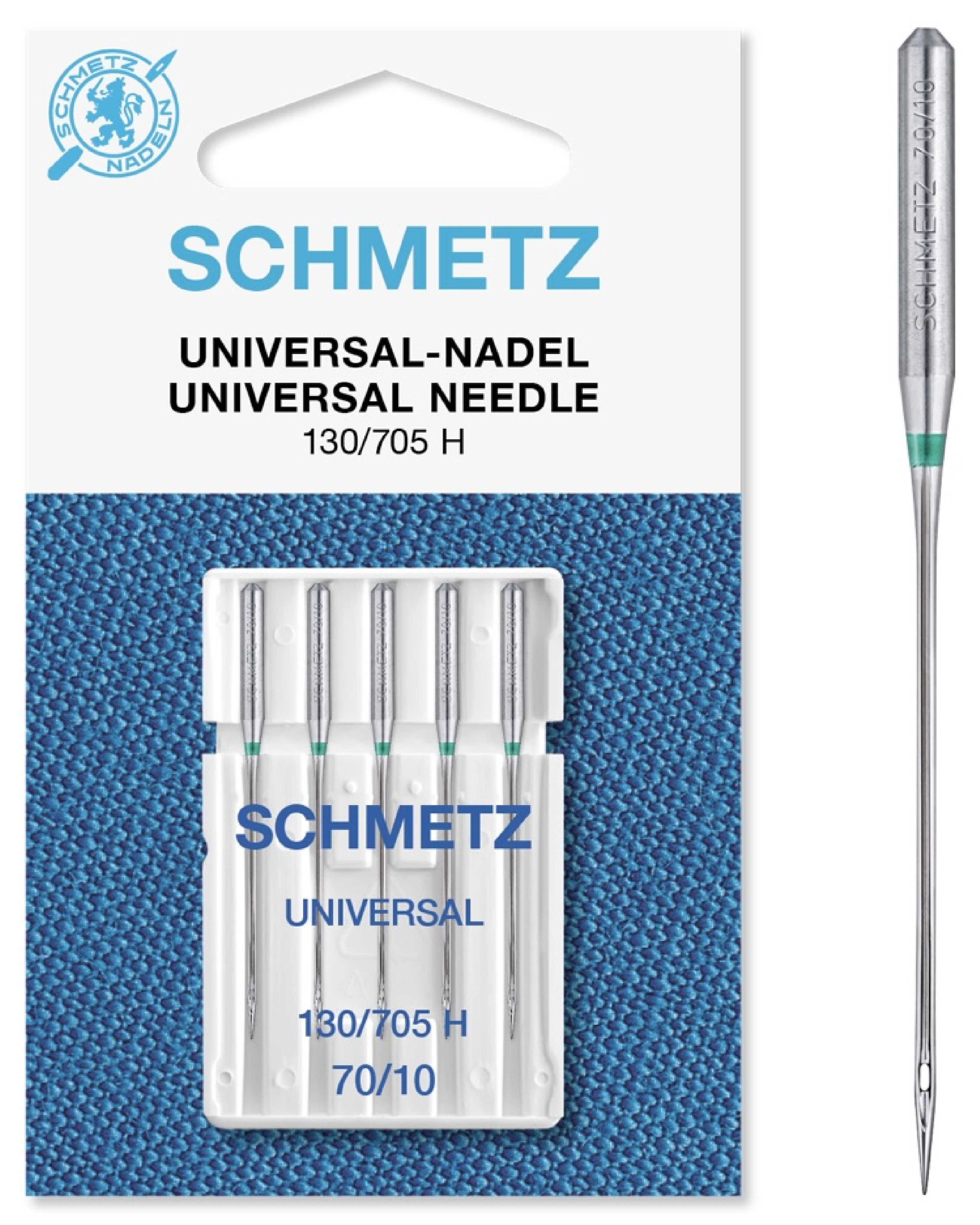 Pakke med 5 stk. kvalitetsnåle til symaskine fra Schmetz, str. 70.