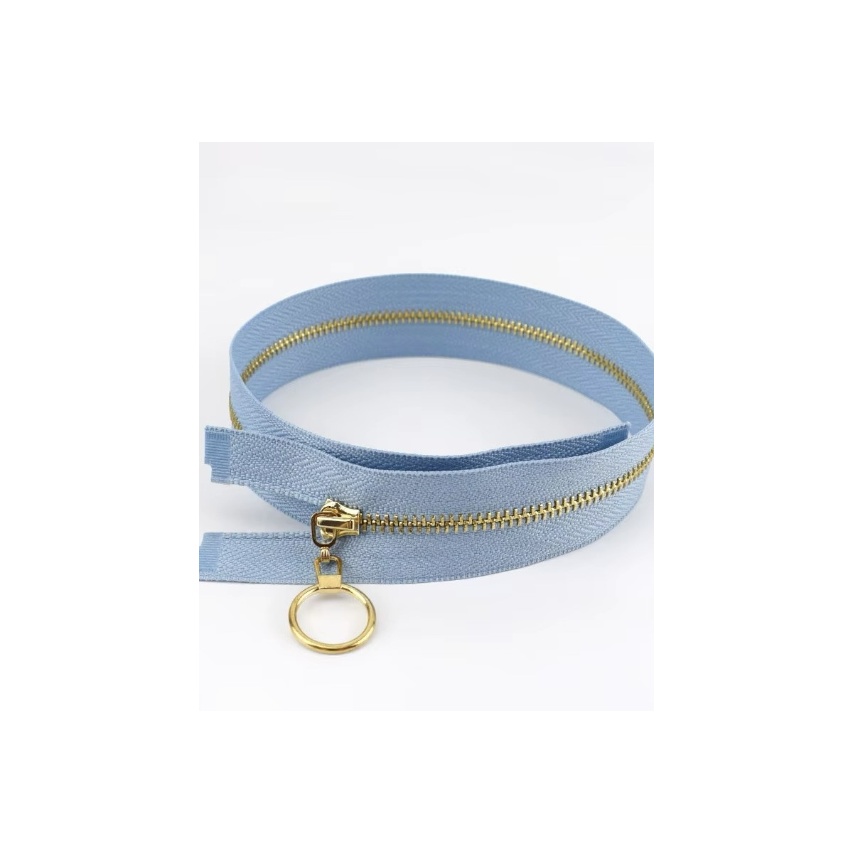 Lynlås med ring "guld" ikke-delbar - lyseblå 30 cm