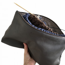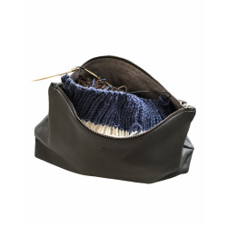 Strikketasken er lavet i en lækker blød læder, så vi garanterer, at strikkepindene ikke finder vej ud.