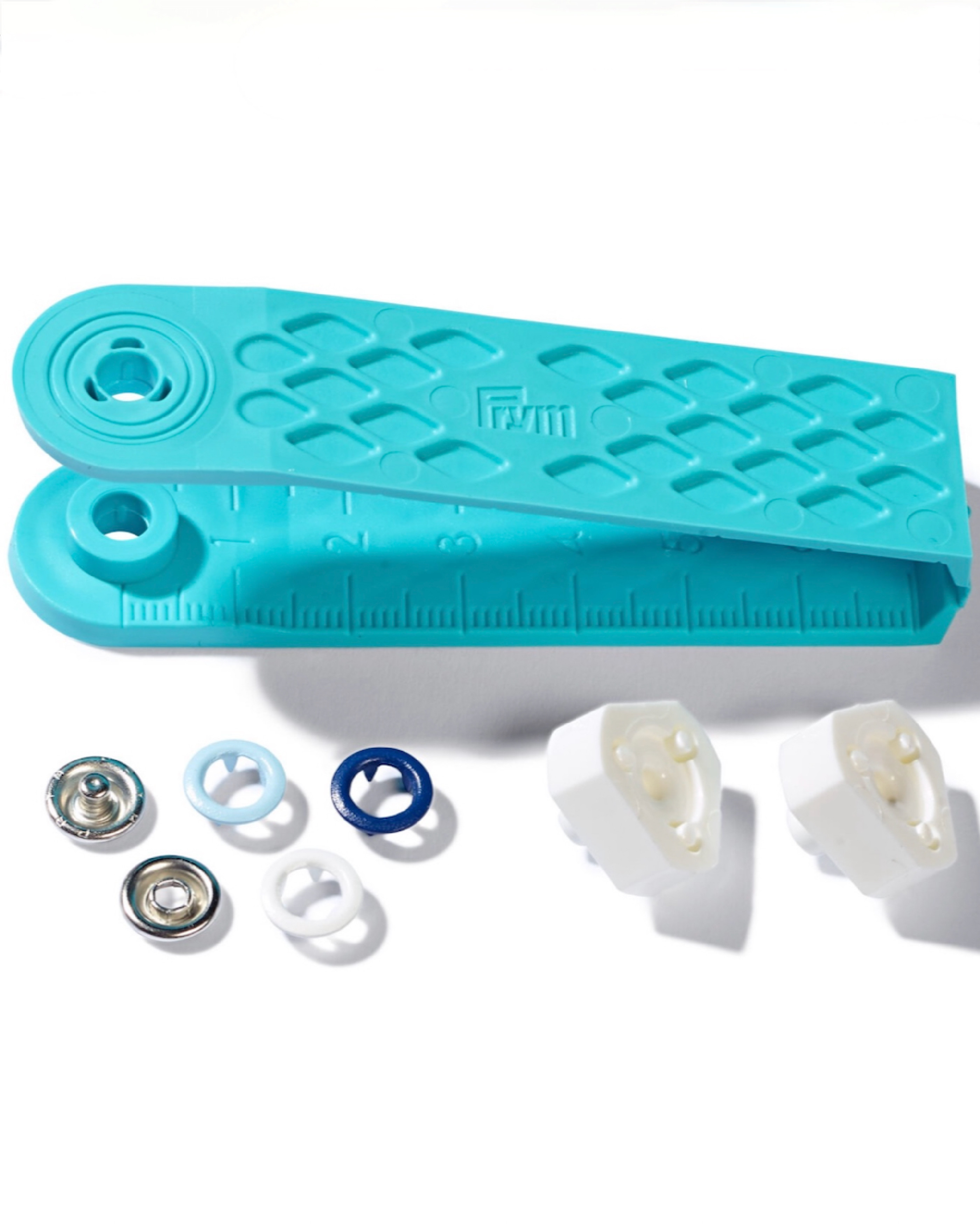 Har du ikke værktøj til trykknapper hjemme, kan der kan købes en trykknap-tang fra Prym her.