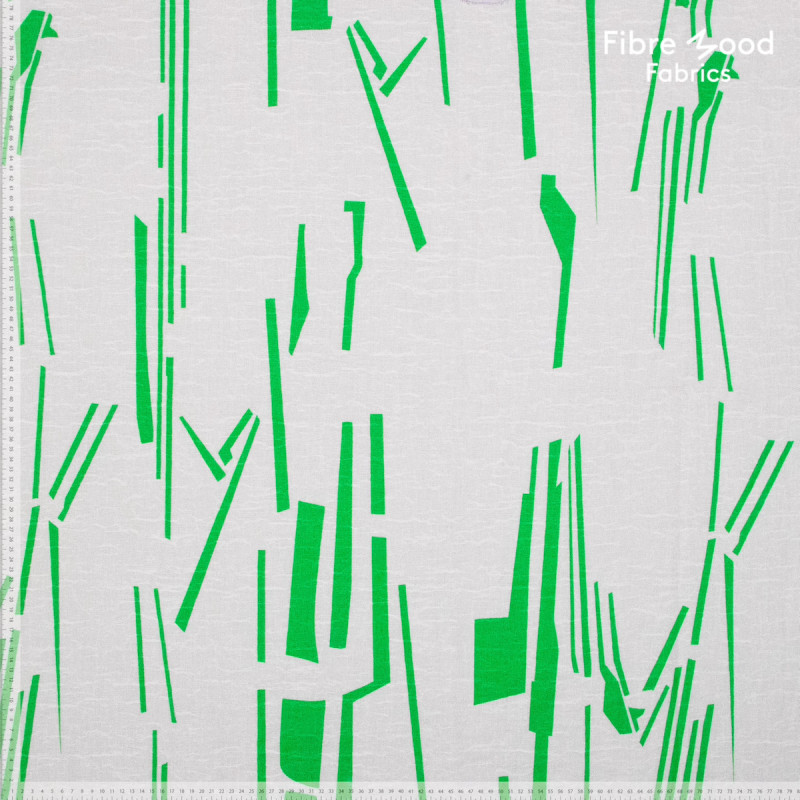 This fabric is sustainably made to OEKO-tex Standard 100 has vowen structure and features a geometric pattern.