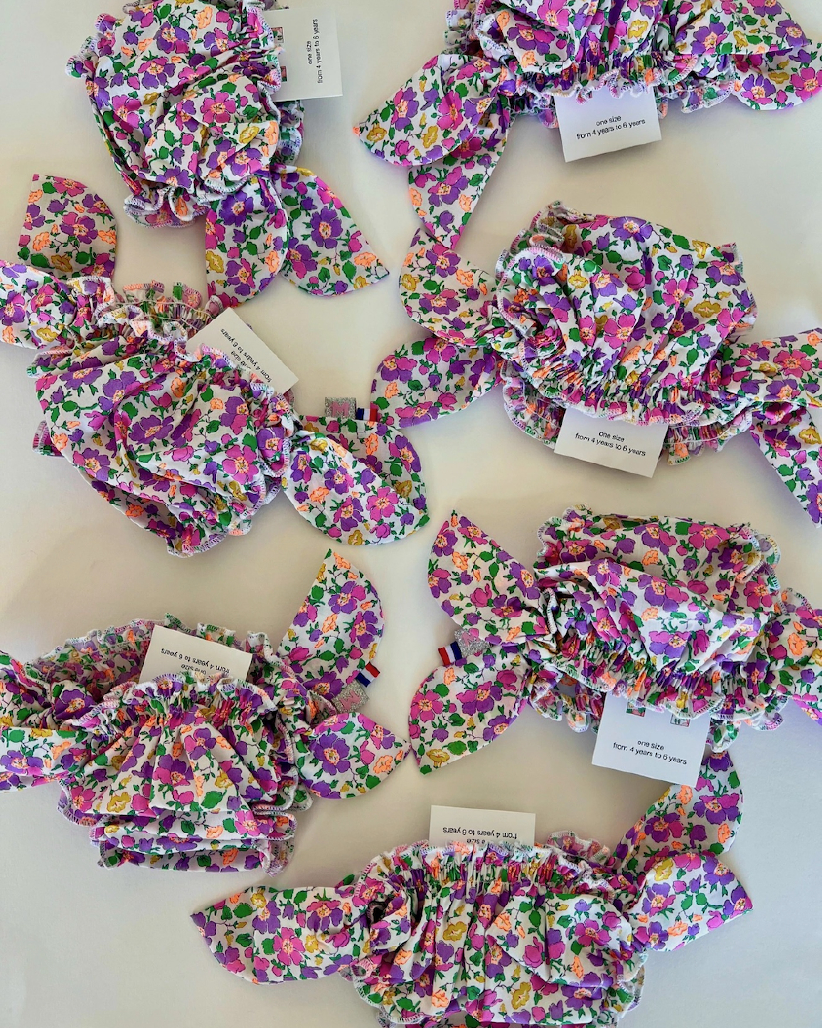 These swim pants are made from Liberty fabric Tana Lawn, a very fine cotton poplin, soft with a silky touch. Light and breathable, this high-quality material also has the advantage of drying very quickly, making it ideal for summer.