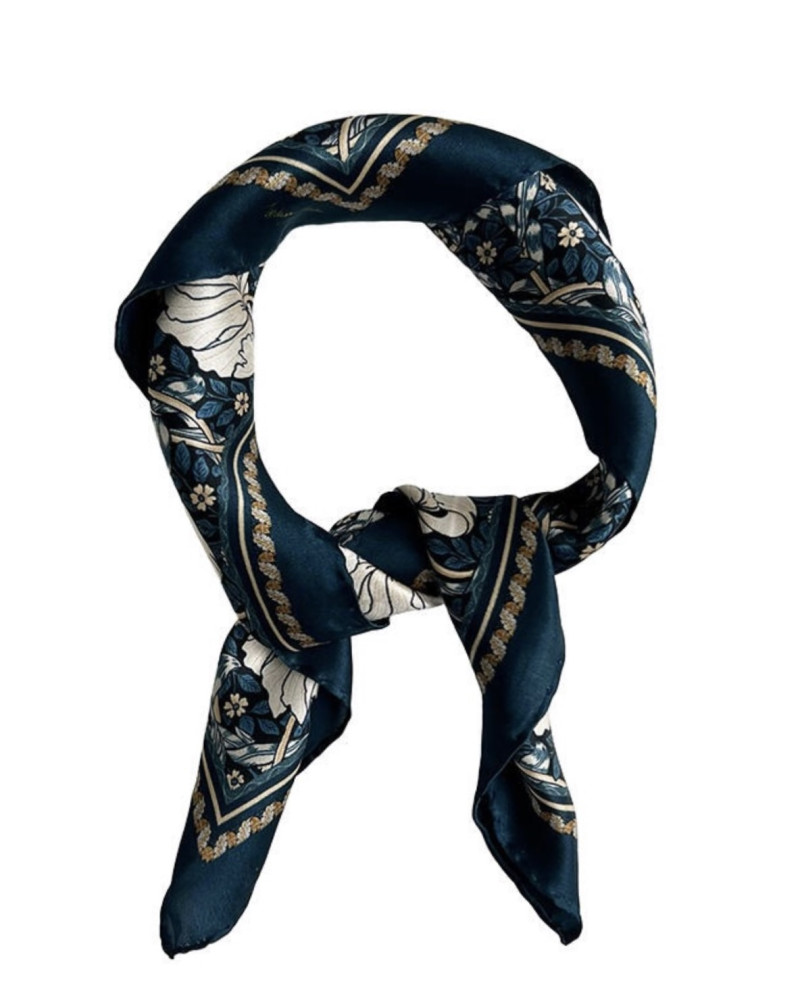 The scarf is made of 100% real silk and produced in Europe with a focus on quality and responsibility. The hand-rolled edges testify to true craftsmanship and add a refined finish. The classic size makes it easy to style in countless ways – around the neck, in the hair, around the wrist or as a detail on the bag.