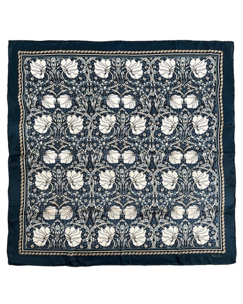 Pimpernel Blue – silk scarf with iconic William Morris motif