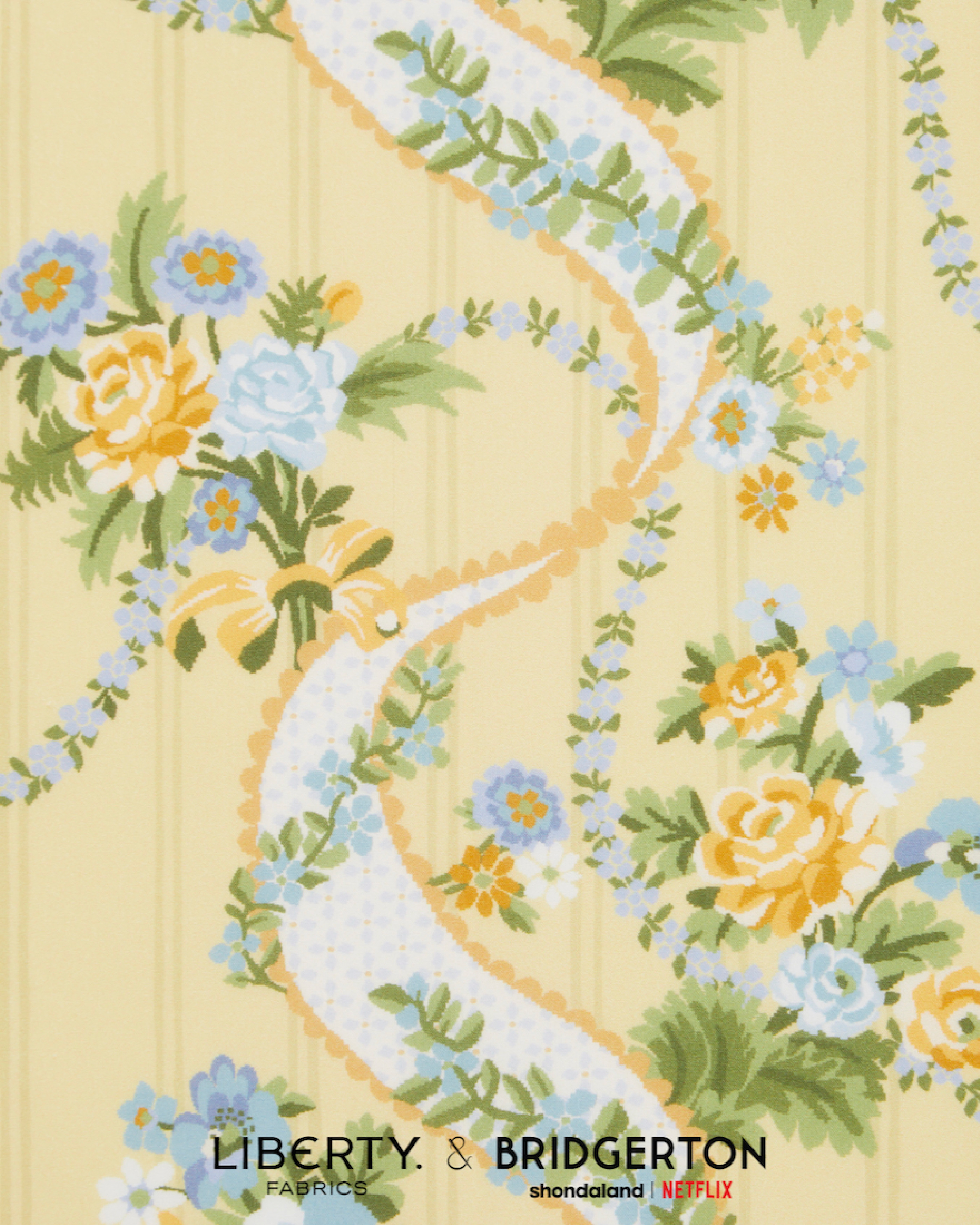 The collaboration between Liberty and Bridgerton has produced an exclusive collection of romantic and sometimes decadent floral designs printed on Liberty Fabrics Tana Lawn cotton.