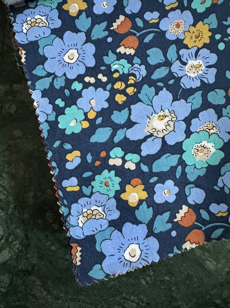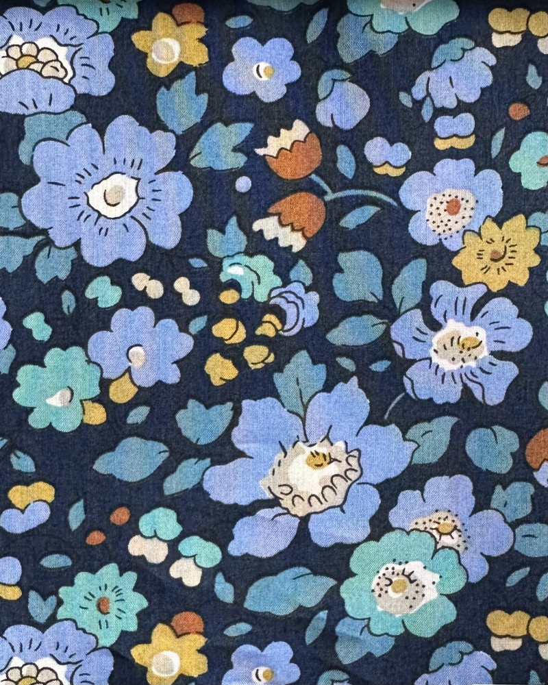 An interpretation af the classic Betsy. Betsy was designed for Liberty Fabrics in 1933. Betsy has been part of Liberty´s Classic Tana Lawn collection since 1982. Now in a new color combination.