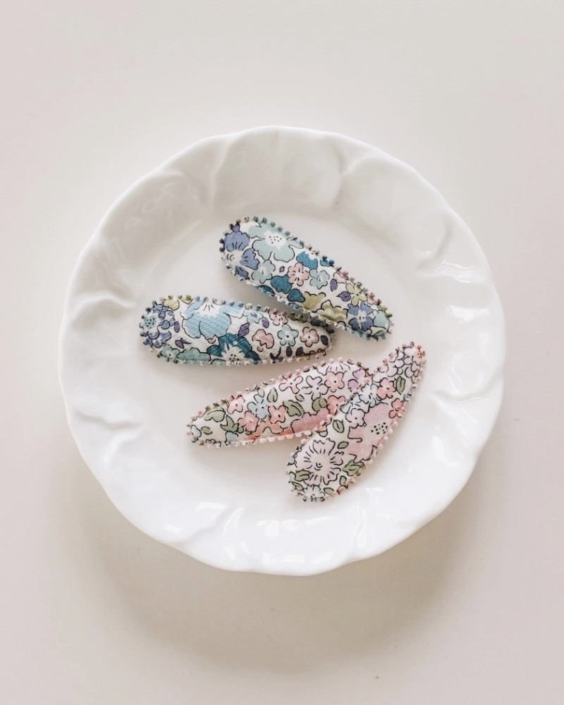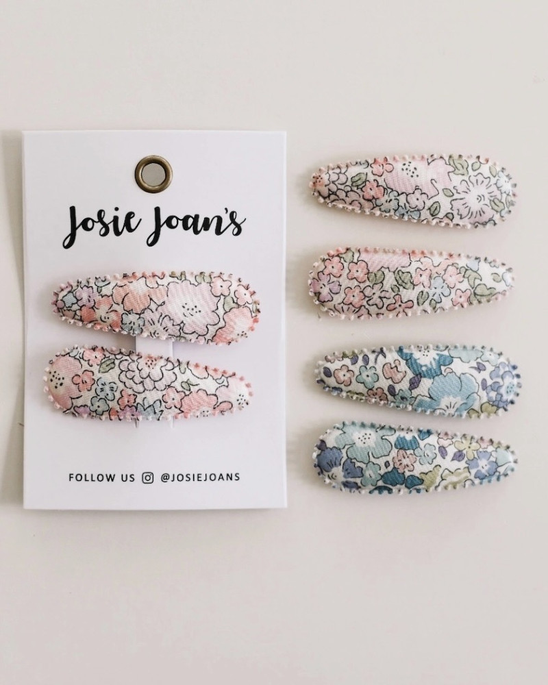 These cute hairclips comes in sets of two. Timeless hair clips made with Liberty Fabrics by Australian Josie Joans.