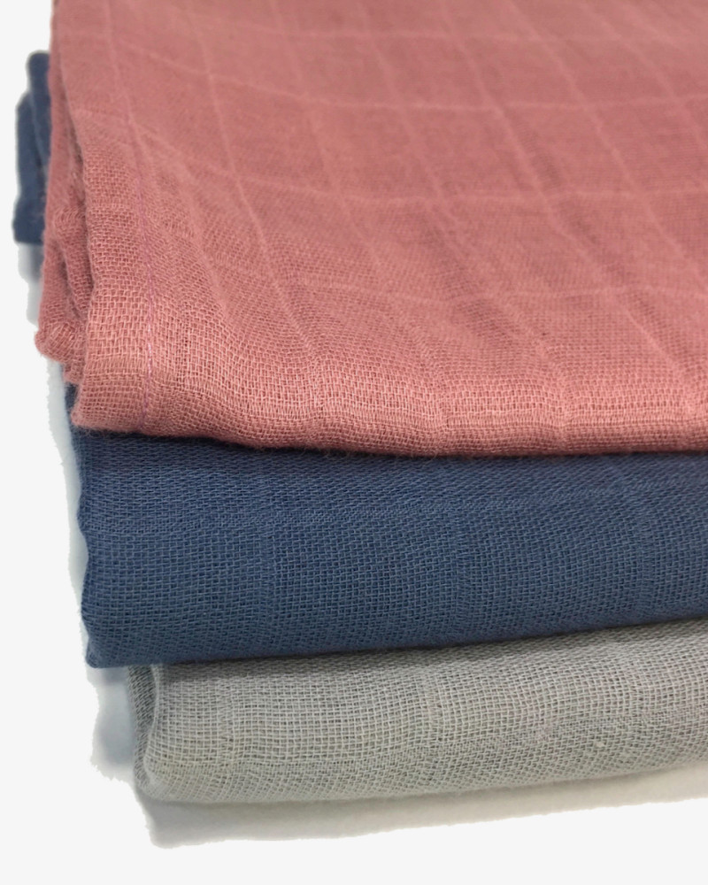 Soft single colored fabric diapers in super soft muslin cotton. Choose from gray, blue and dark walnut pink
