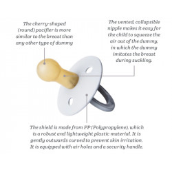 Cherry shaped natural latex pacifiers from the Danish company Bibs. Size 2.