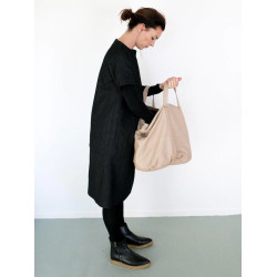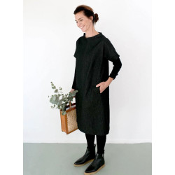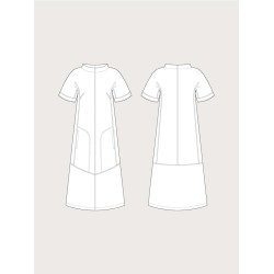 The Cap sleeve dress has a slight sixties vibe with its clean lines. It slips over the head, has a cowl neck and cap sleeves.